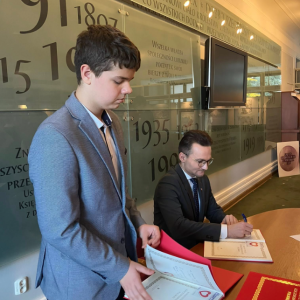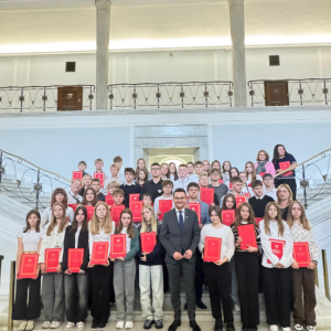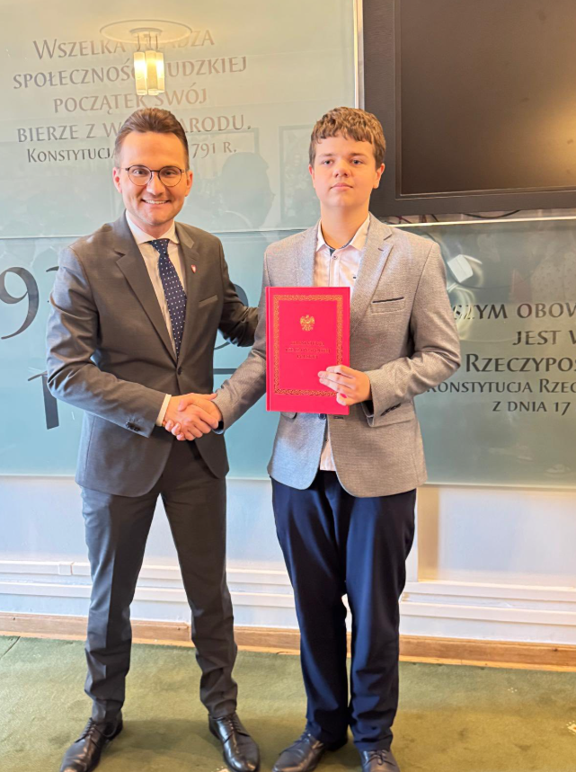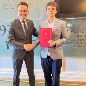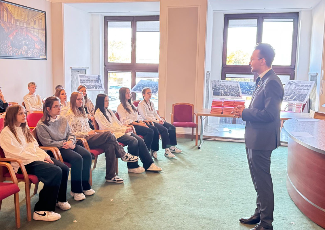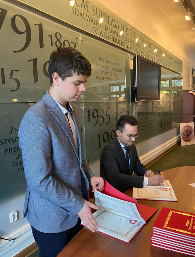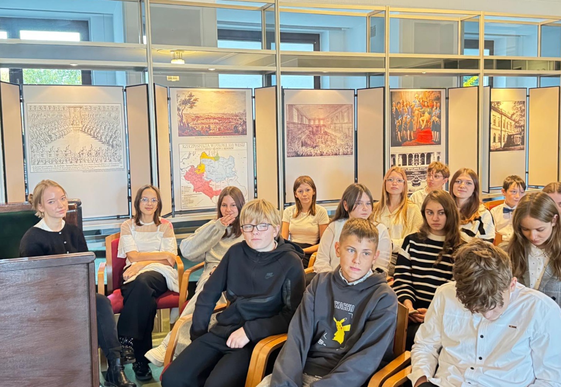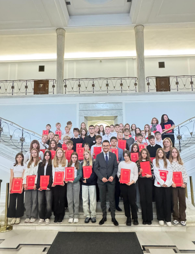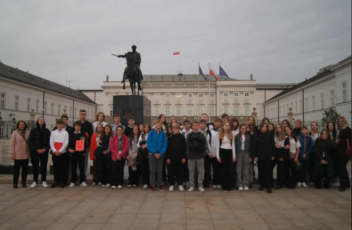 Uczniowie klas starszych wybrali się na wycieczkę do stolicy. Podczas wizyty w Sejmie mieli okazję zwiedzić budynek, poznać jego historię oraz porozmawiać z jednym z posłów. Każdy uczestnik otrzymał również egzemplarz Konstytucji RP.