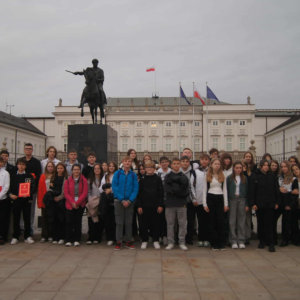 Po sejmowym spotkaniu uczniowie udali się na spacer po Nowym Świecie, gdzie mogli zobaczyć przygotowaną scenografię do filmu „Lalka” – było to wyjątkowe i ciekawe doświadczenie. Wycieczka zakończyła się na Placu Zamkowym. To był dzień pełen wrażeń.