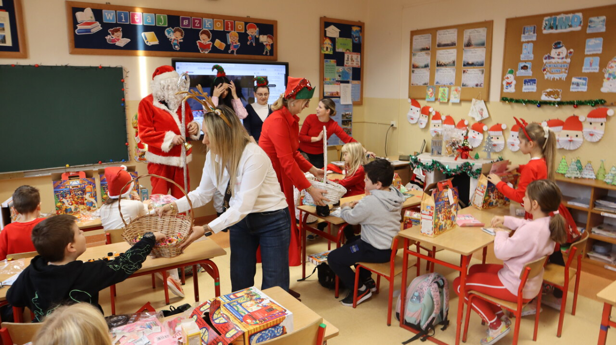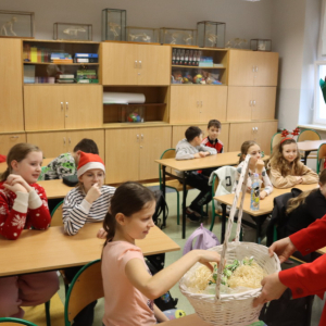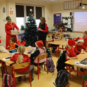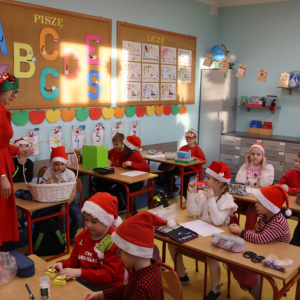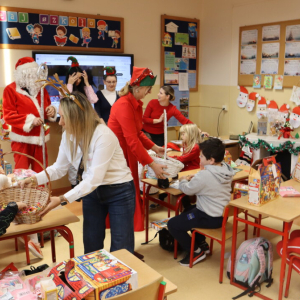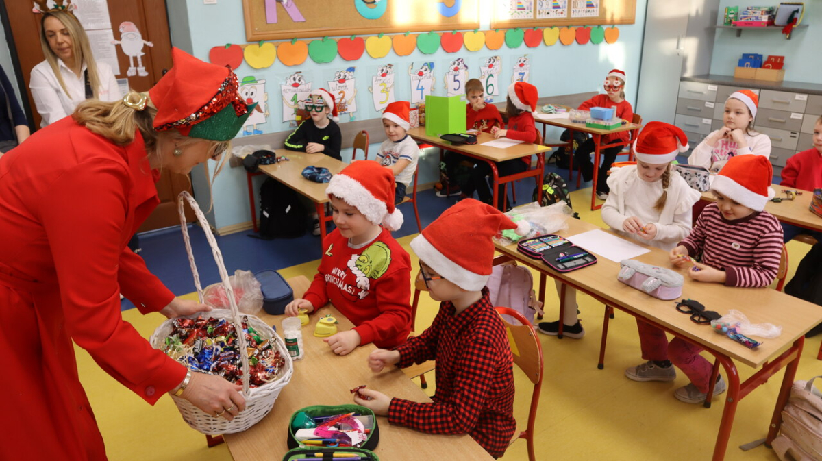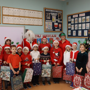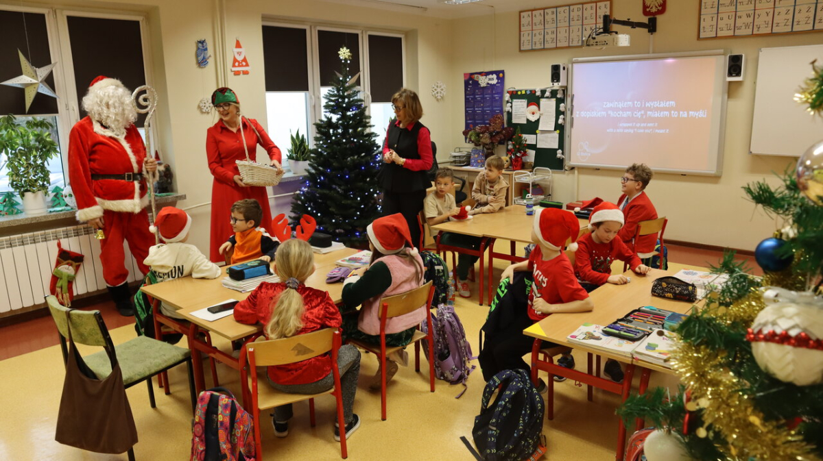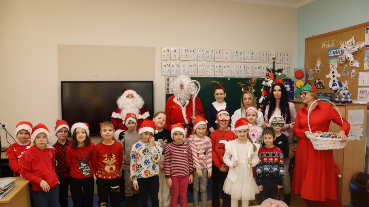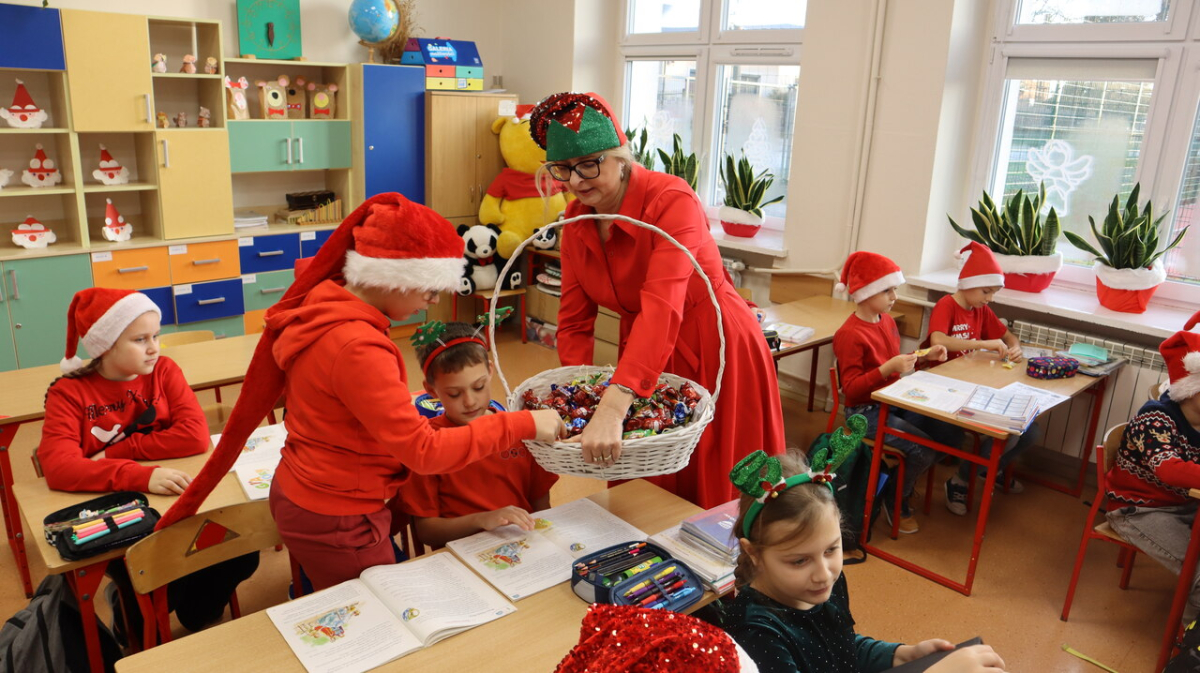 Uczniowie mogli cieszyć się świątecznymi dekoracjami. Mikołaj, który odwiedził naszą szkołę, obdarował nauczycieli słodkimi upominkami, wprowadzając wszystkich w świąteczny nastrój.