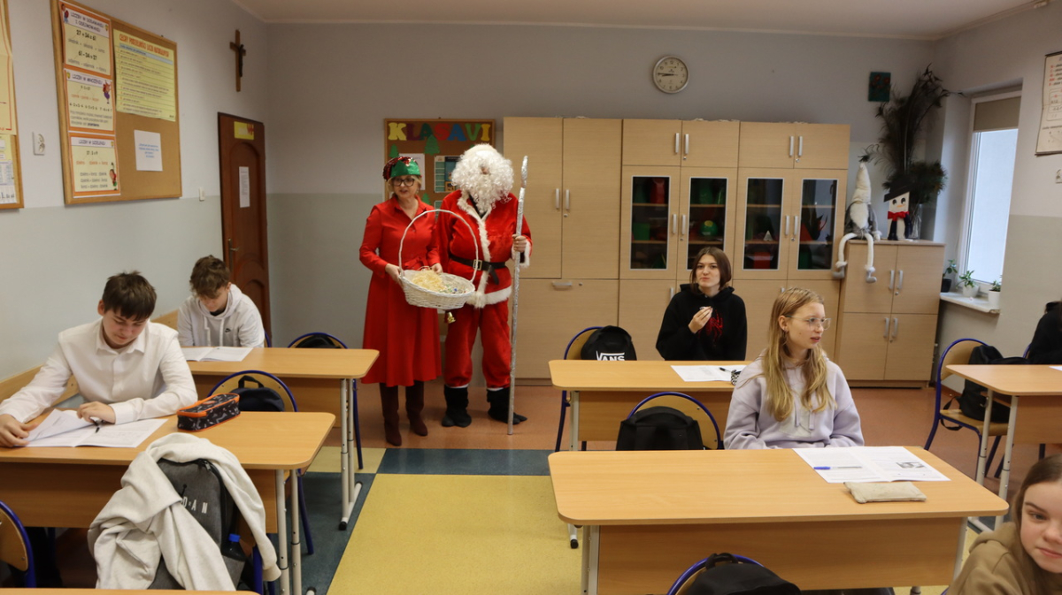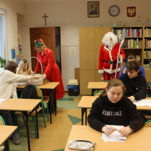 W dniu 08 grudnia w naszej szkole odbyły się coroczne Mikołajki, które zostały zorganizowane przez Samorząd Uczniowski. Tegoroczne wydarzenie miało na celu wprowadzenie w radosną atmosferę Świąt Bożego Narodzenia oraz wyrażenie wdzięczności nauczycielom i pracownikom szkoły za ich codzienny trud i zaangażowanie.