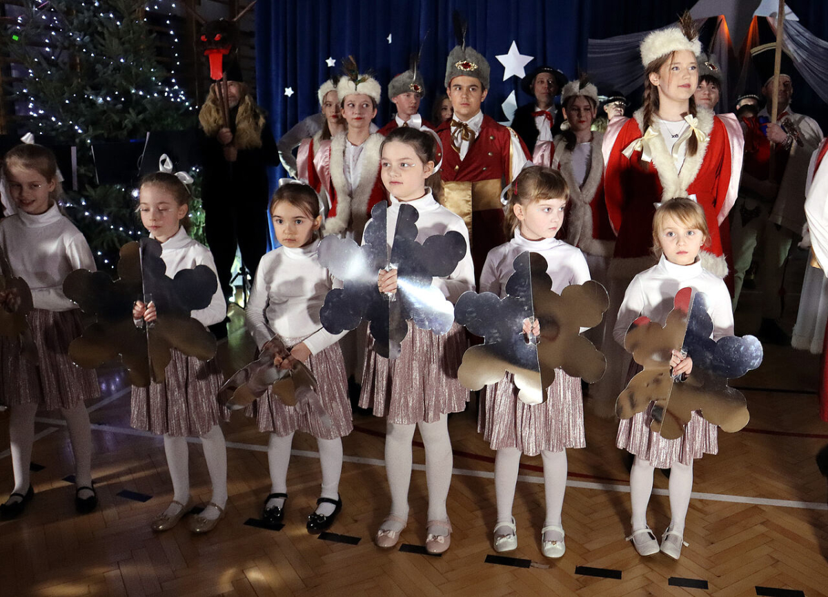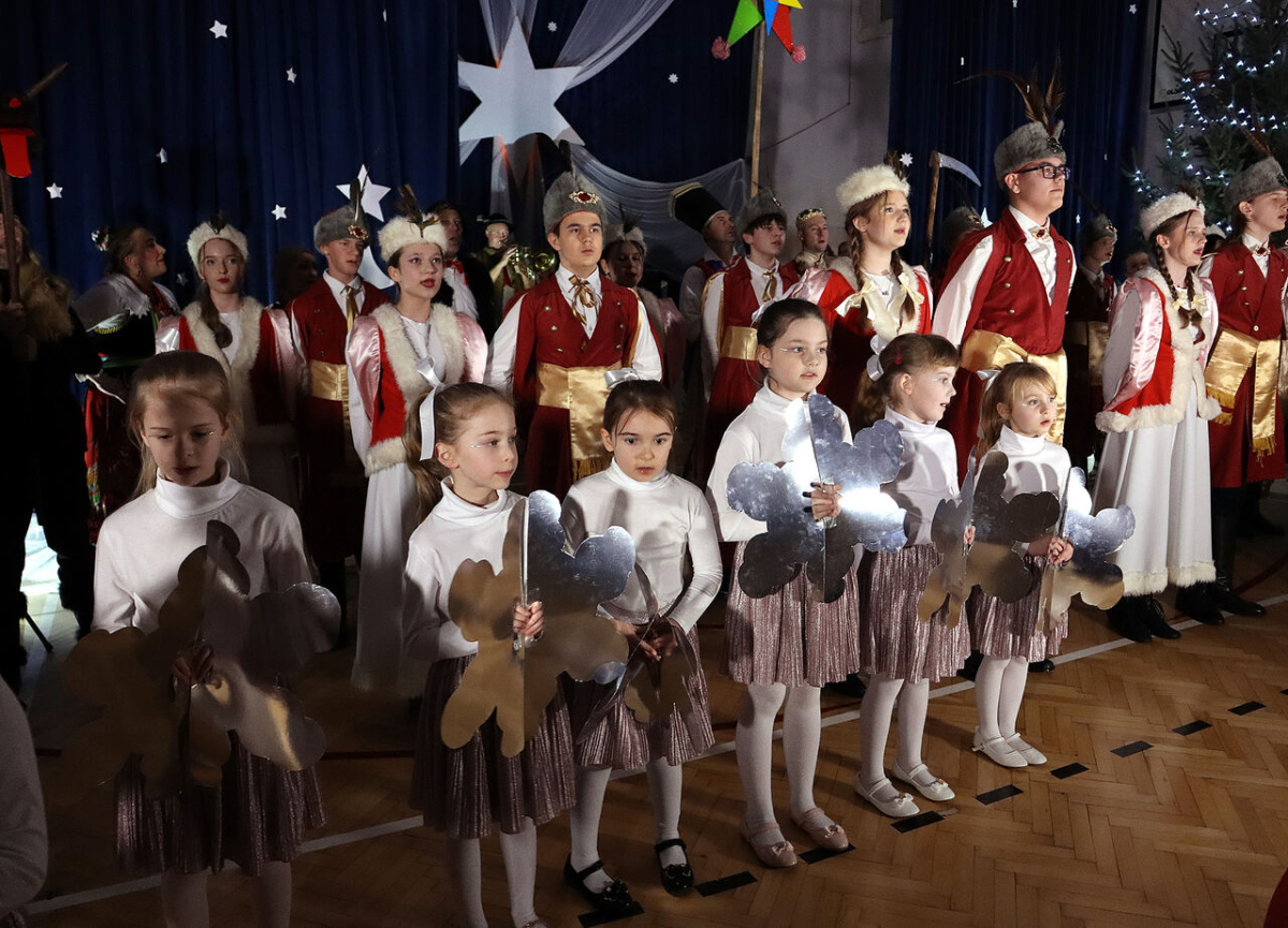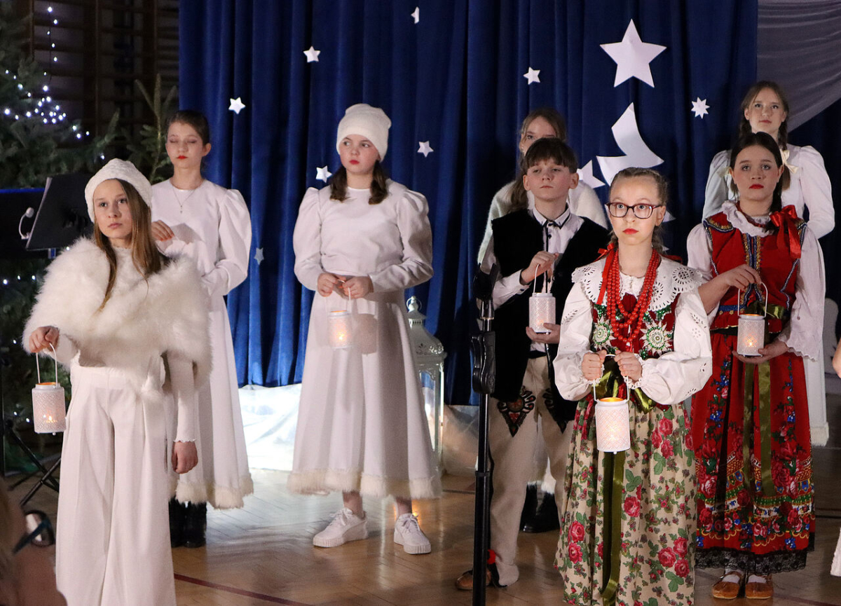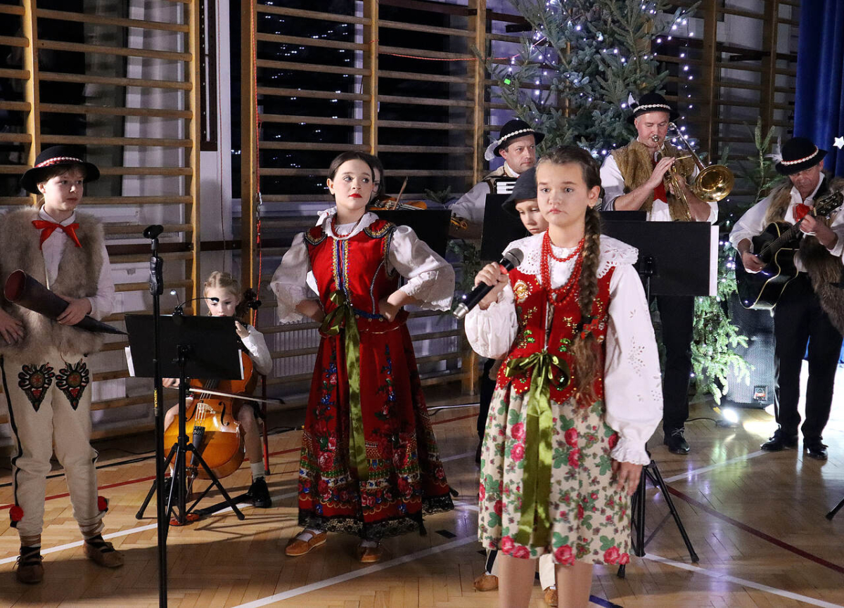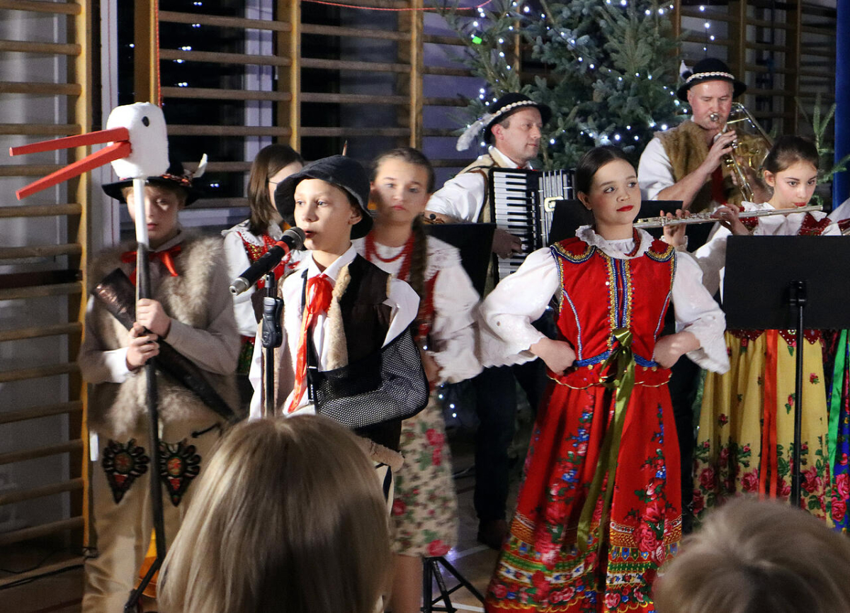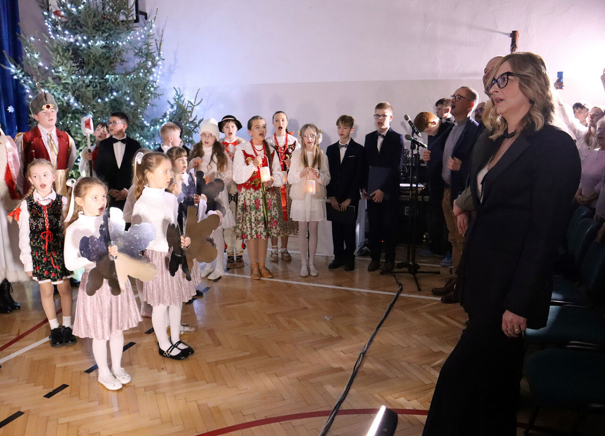 - Piątkowy wieczór jest dla Państwa wypełniony radością, wzruszeniami i dumą – takie słowa skierowała Pani Dyrektor w kierunku naszych seniorów. - Wasza mądrość życiowa, doświadczenie i miłość kształtują w Waszych wnukach wiarę w siebie, uczą szacunku i wartości, które pozostają z nimi na całe życie. Wydarzenie, jakim jest dzisiejszy koncert, odbyło się dzięki szeroko rozumianej współpracy: szkoły, rodziców i środowiska lokalnego. W przedsięwzięciu wzięli udział nie tylko nasi uczniowie z klas I-VIII, ale także rodzice, którzy wcielili się w kolędników a przygrywała im Gidelska Orkiestra Dęta. Takie wspólne kolędowanie jest wyrazem jedności i szacunku międzypokoleniowego. A dla dzieci i młodzieży szkolnej jest świadectwem naszej tożsamości.