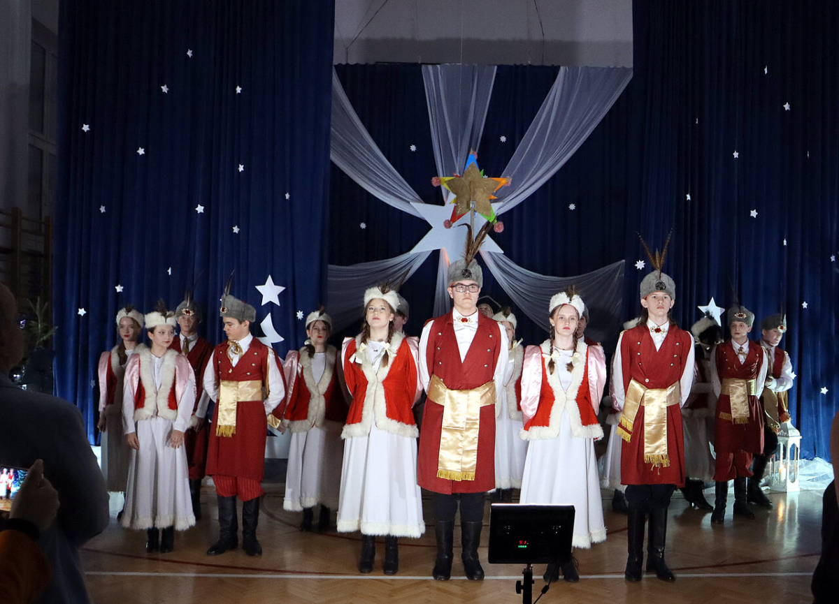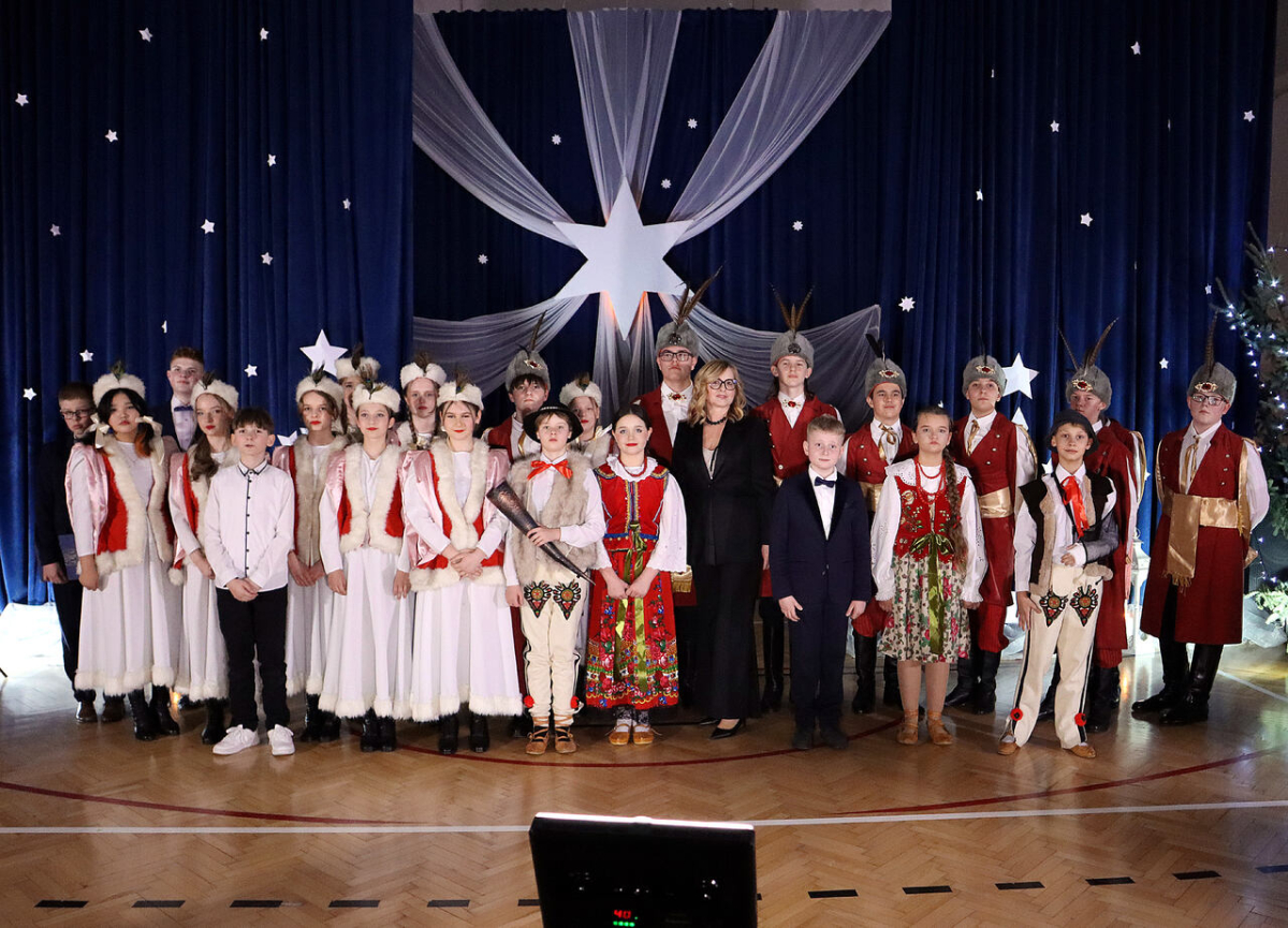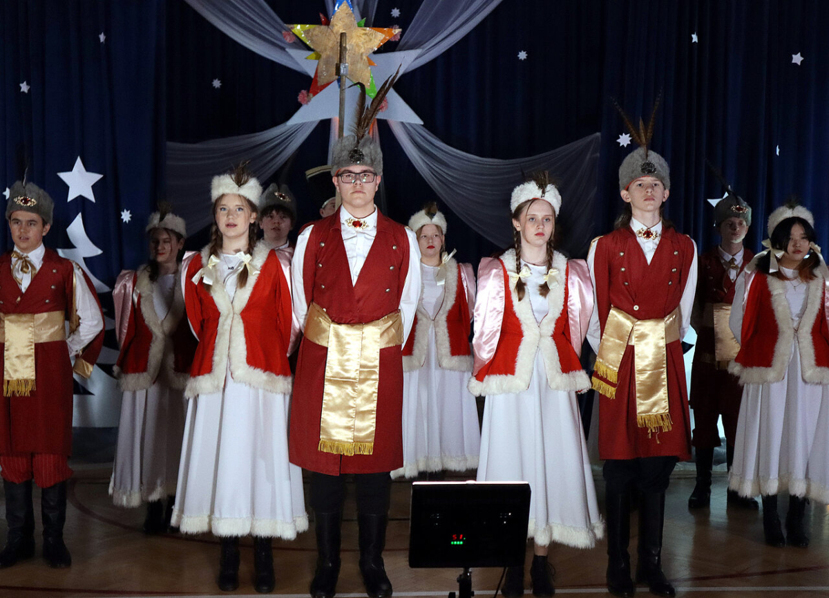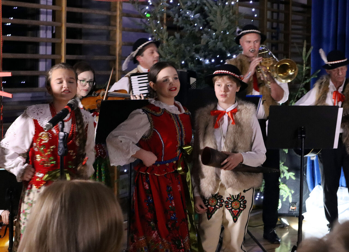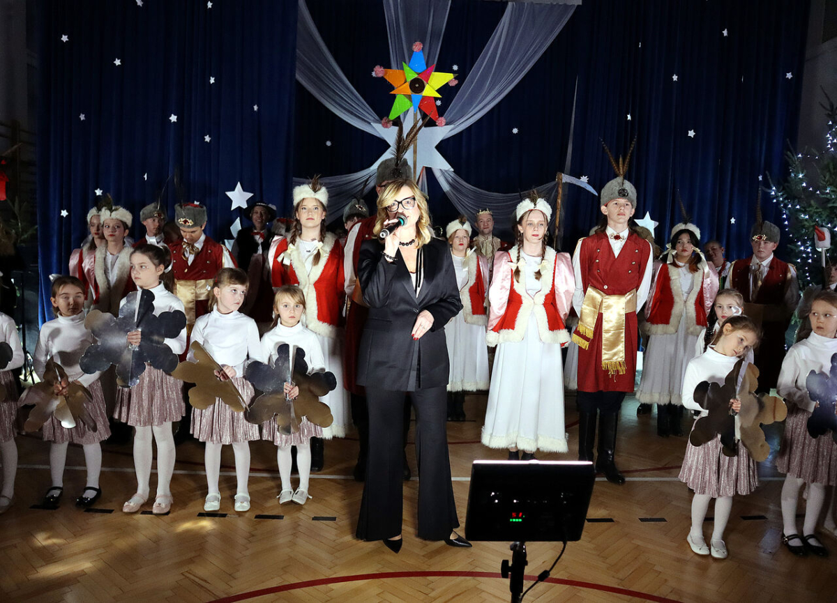 - Piątkowy wieczór jest dla Państwa wypełniony radością, wzruszeniami i dumą – takie słowa skierowała Pani Dyrektor w kierunku naszych seniorów. - Wasza mądrość życiowa, doświadczenie i miłość kształtują w Waszych wnukach wiarę w siebie, uczą szacunku i wartości, które pozostają z nimi na całe życie. Wydarzenie, jakim jest dzisiejszy koncert, odbyło się dzięki szeroko rozumianej współpracy: szkoły, rodziców i środowiska lokalnego. W przedsięwzięciu wzięli udział nie tylko nasi uczniowie z klas I-VIII, ale także rodzice, którzy wcielili się w kolędników a przygrywała im Gidelska Orkiestra Dęta. Takie wspólne kolędowanie jest wyrazem jedności i szacunku międzypokoleniowego. A dla dzieci i młodzieży szkolnej jest świadectwem naszej tożsamości.