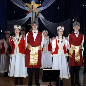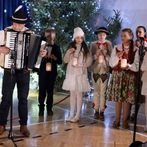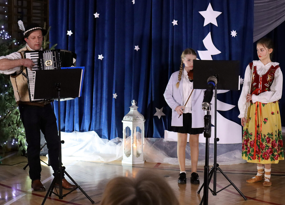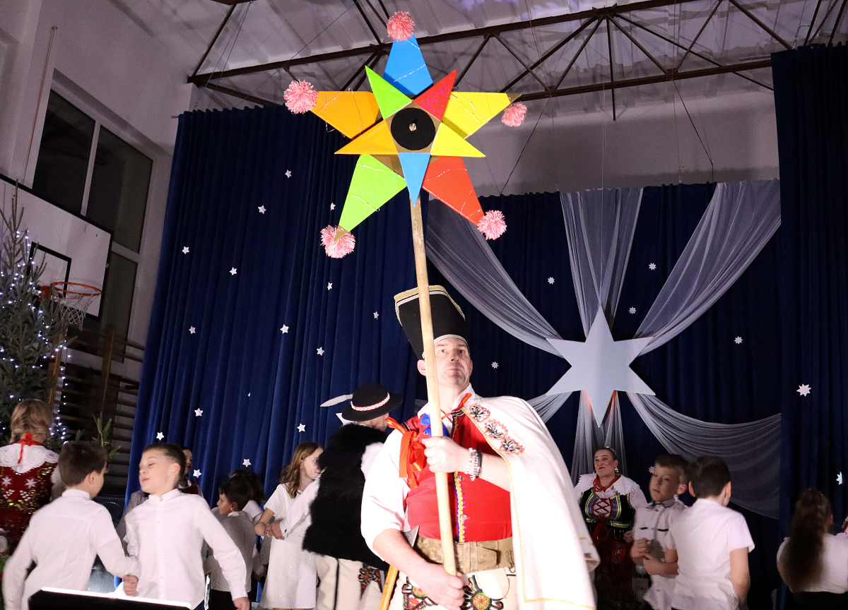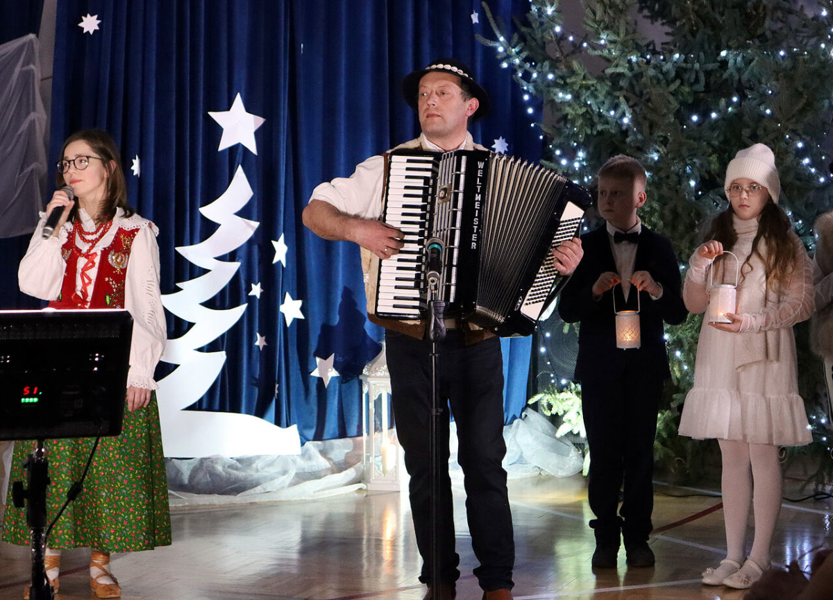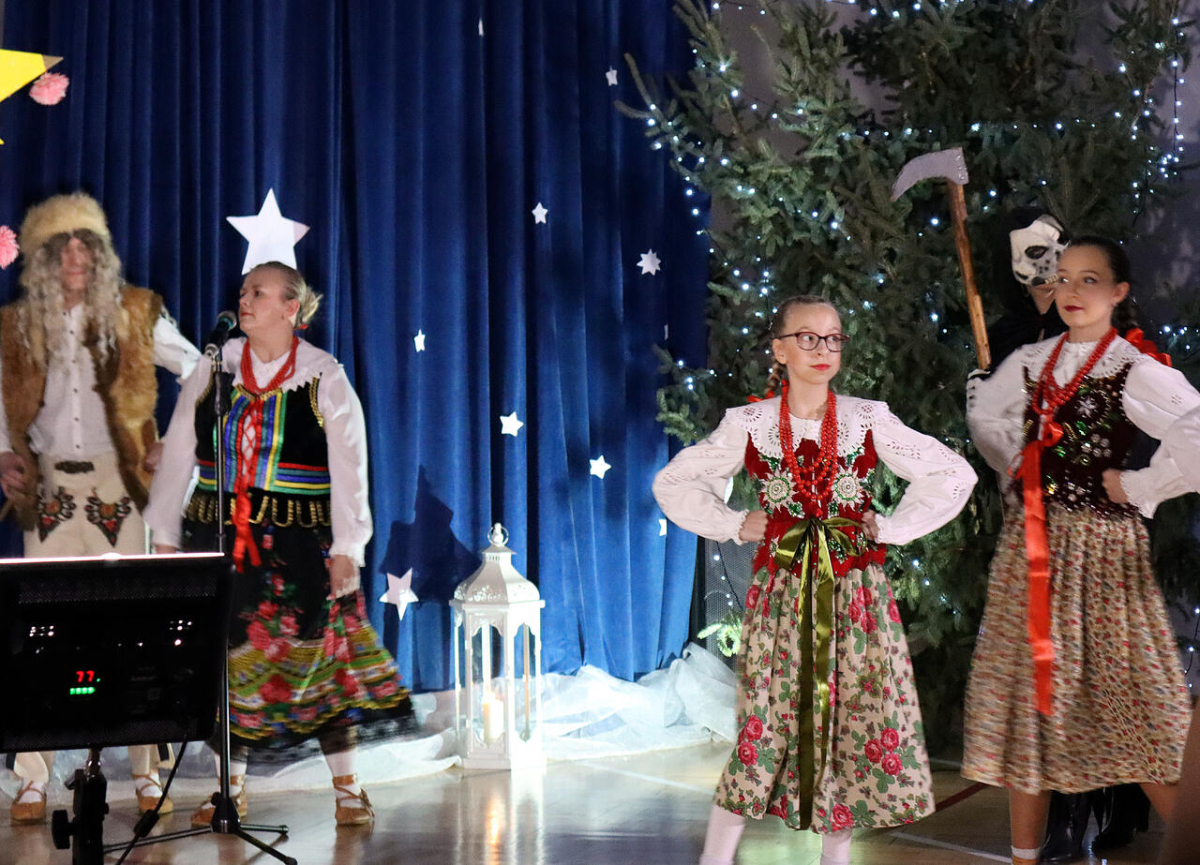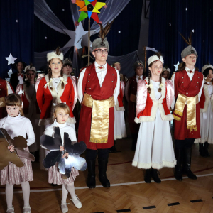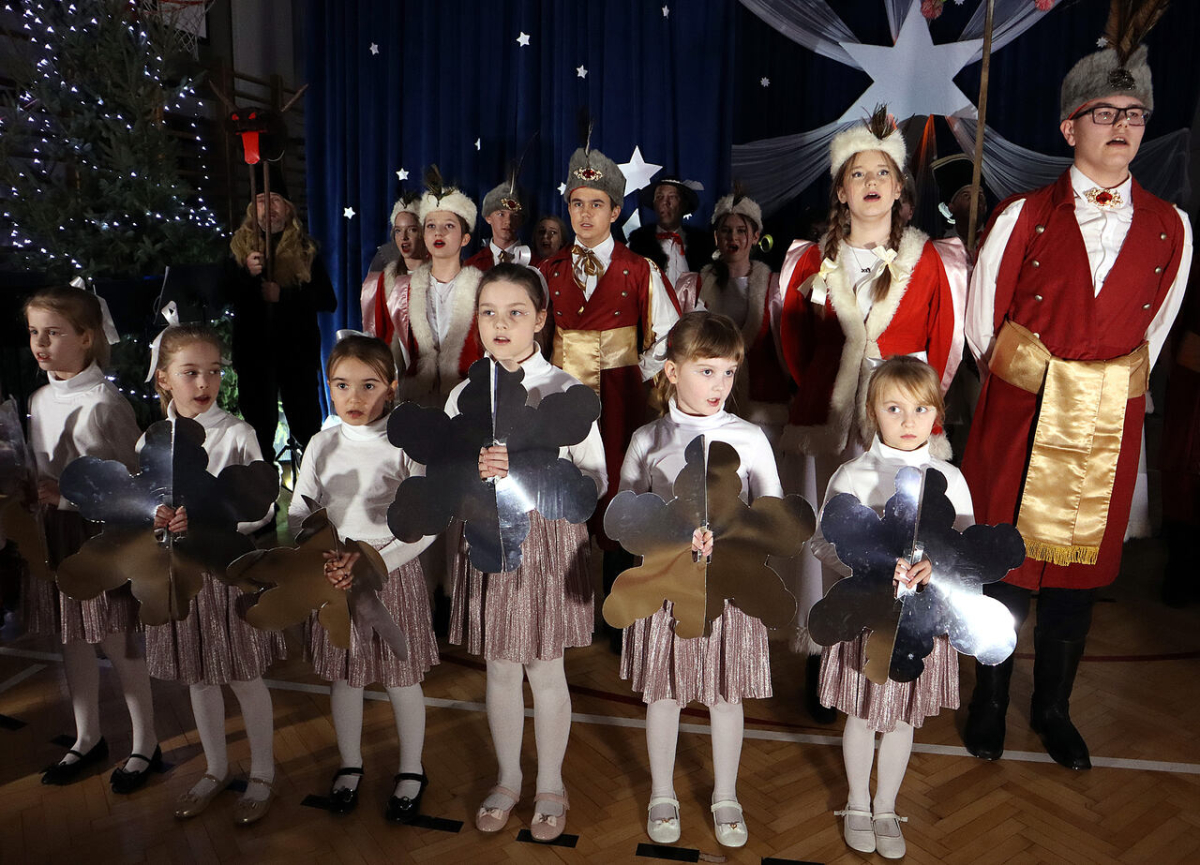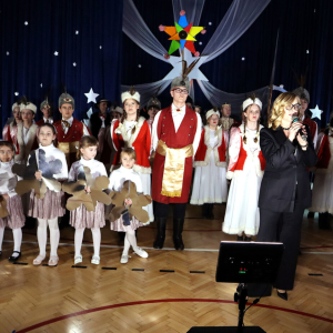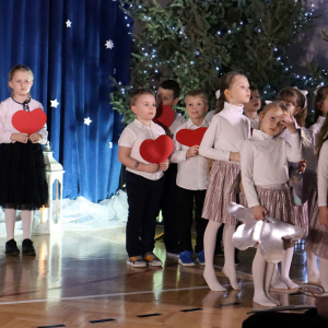 - Piątkowy wieczór jest dla Państwa wypełniony radością, wzruszeniami i dumą – takie słowa skierowała Pani Dyrektor w kierunku naszych seniorów. - Wasza mądrość życiowa, doświadczenie i miłość kształtują w Waszych wnukach wiarę w siebie, uczą szacunku i wartości, które pozostają z nimi na całe życie. Wydarzenie, jakim jest dzisiejszy koncert, odbyło się dzięki szeroko rozumianej współpracy: szkoły, rodziców i środowiska lokalnego. W przedsięwzięciu wzięli udział nie tylko nasi uczniowie z klas I-VIII, ale także rodzice, którzy wcielili się w kolędników a przygrywała im Gidelska Orkiestra Dęta. Takie wspólne kolędowanie jest wyrazem jedności i szacunku międzypokoleniowego. A dla dzieci i młodzieży szkolnej jest świadectwem naszej tożsamości.