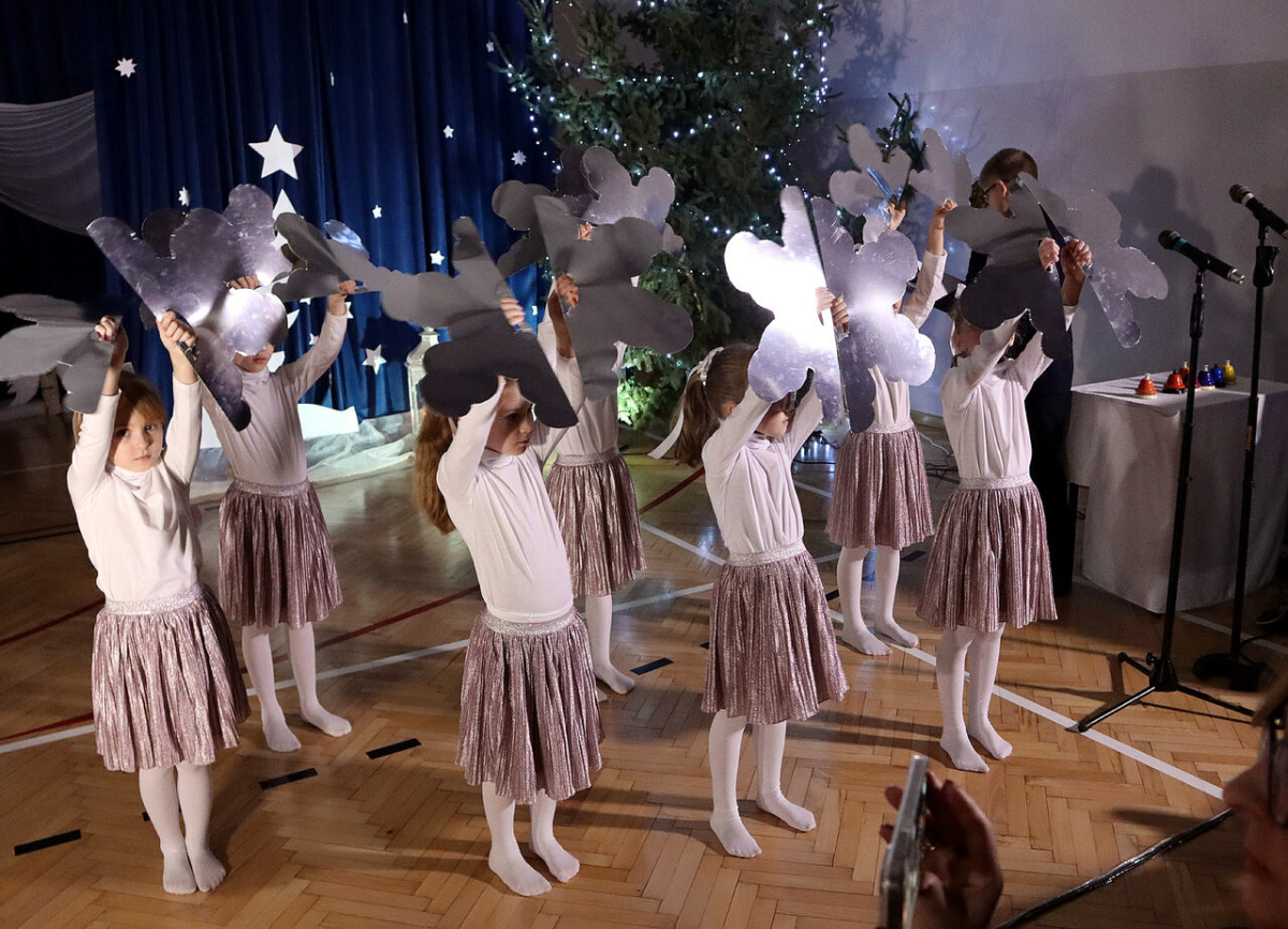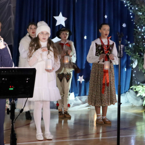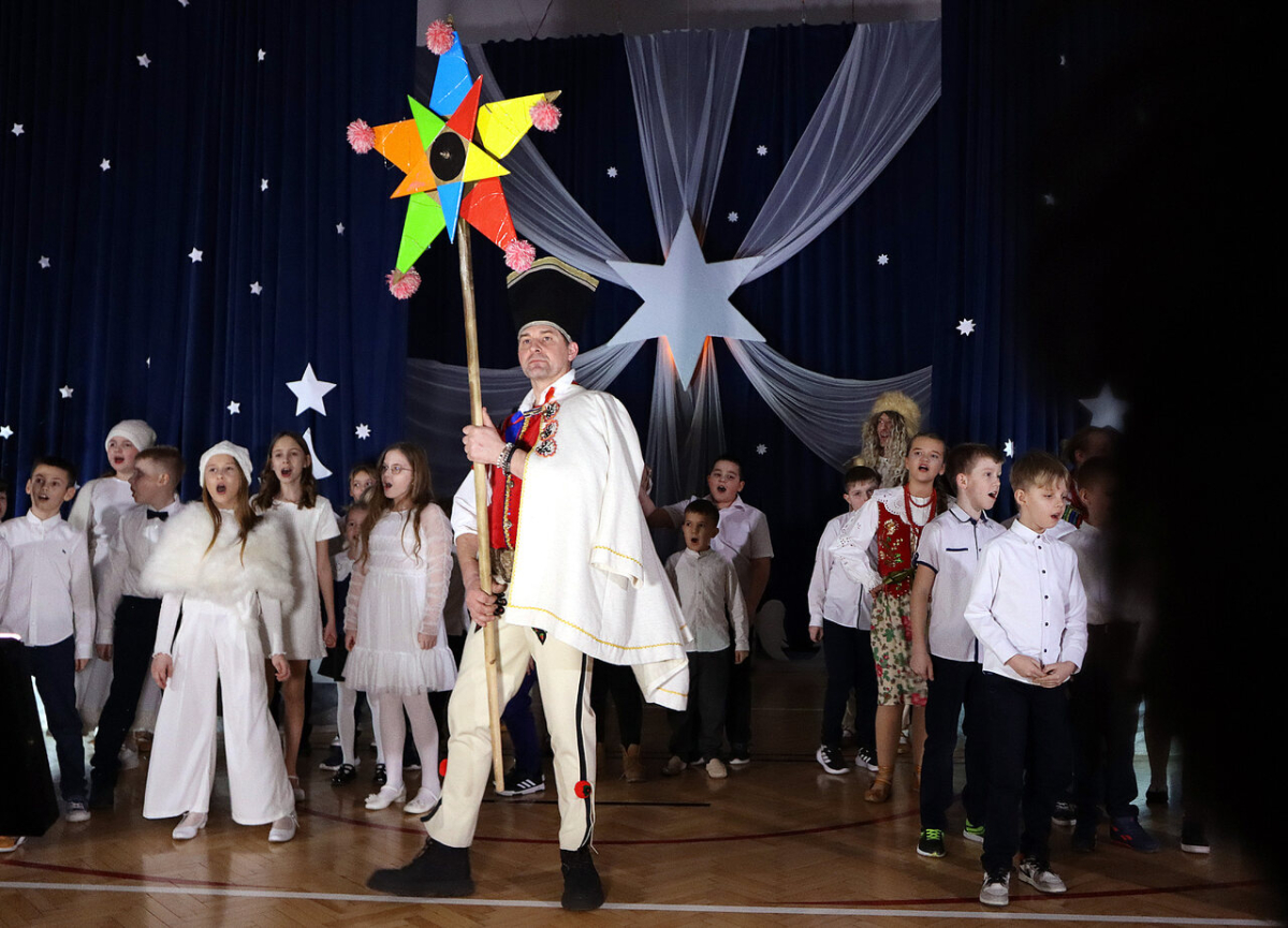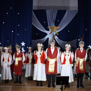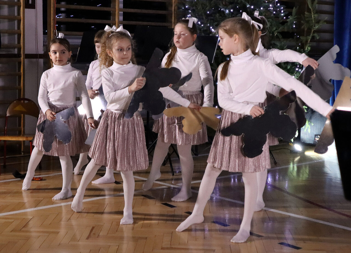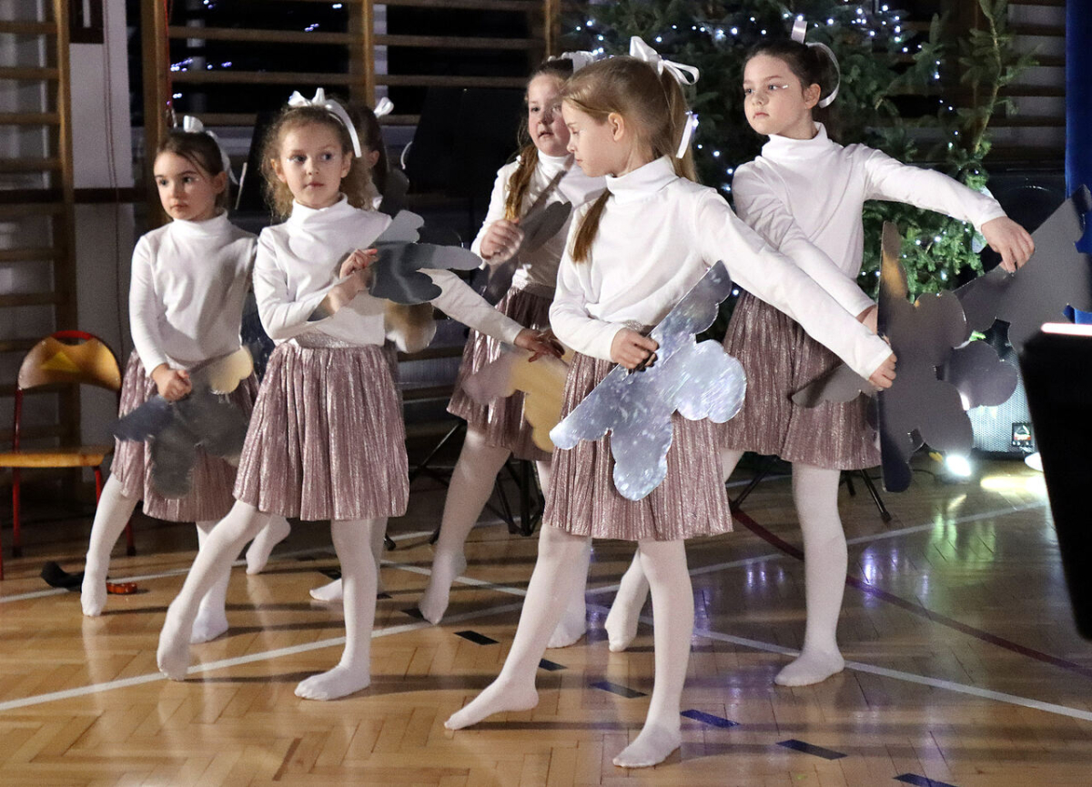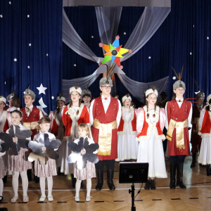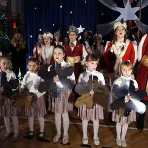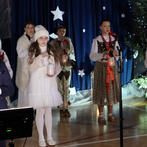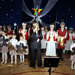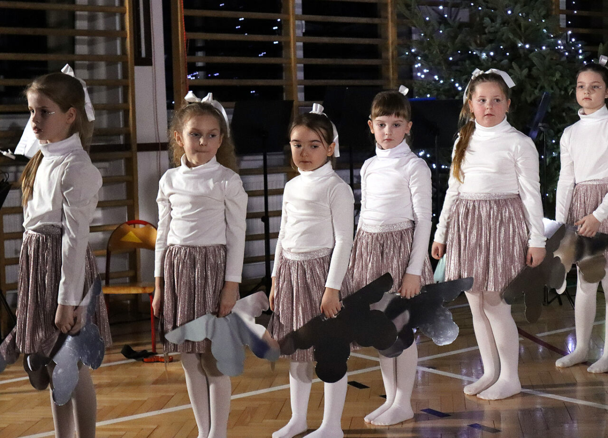 - Piątkowy wieczór jest dla Państwa wypełniony radością, wzruszeniami i dumą – takie słowa skierowała Pani Dyrektor w kierunku naszych seniorów. - Wasza mądrość życiowa, doświadczenie i miłość kształtują w Waszych wnukach wiarę w siebie, uczą szacunku i wartości, które pozostają z nimi na całe życie. Wydarzenie, jakim jest dzisiejszy koncert, odbyło się dzięki szeroko rozumianej współpracy: szkoły, rodziców i środowiska lokalnego. W przedsięwzięciu wzięli udział nie tylko nasi uczniowie z klas I-VIII, ale także rodzice, którzy wcielili się w kolędników a przygrywała im Gidelska Orkiestra Dęta. Takie wspólne kolędowanie jest wyrazem jedności i szacunku międzypokoleniowego. A dla dzieci i młodzieży szkolnej jest świadectwem naszej tożsamości.